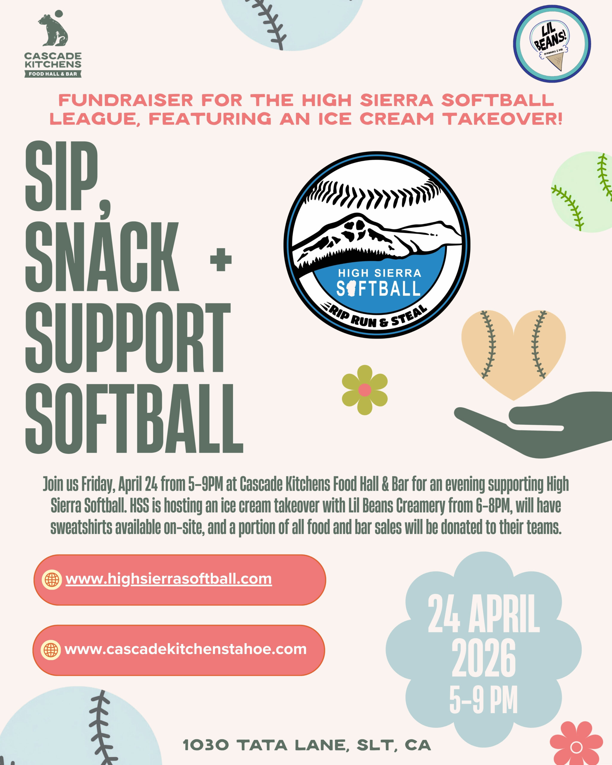 On Friday, April 24, we’re teaming up with High Sierra Softball for a special fundraiser to support their teams and help local athletes continue to grow, compete, and thrive.